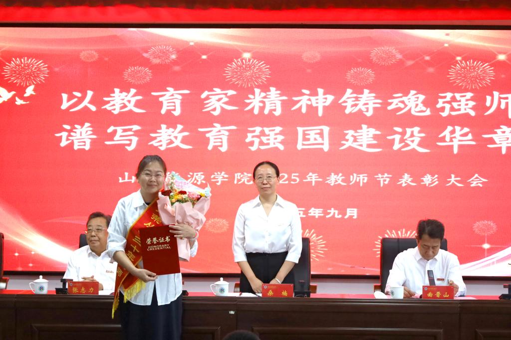 春华秋实,见证耕耘足迹;殷殷期盼,点燃奋斗者激情。校党委副书记、院长桑楠代表学校向受到表彰的先进集体和个人表示热烈的祝贺,向辛勤耕耘在教学、科研、管理和服务一线的全体教职员工,致以最诚挚的节日问候。她指出,学校始终坚持以党的建设为引领,统筹推动学校各项事业高质量发展,尤其是深入实施人才强校战略,把师资队伍、人才队伍建设作为核心任务。她对全校教师提出三点期望:一是立师者德魂,怀赤子之心,悉心育人;二是砺治学匠心,以卓越为标,潜心治学;三是担育人使命,擎能源之光,点亮未来。她强调,教育强国、教育强省建设为高等学校和广大教师、教育工作者指明了努力方向,希望荣膺表彰的集体与个人珍惜荣誉、再攀高峰;希望全体教职工“不忘初心、牢记使命”,在新征程中奋勇拼搏、实干笃行。