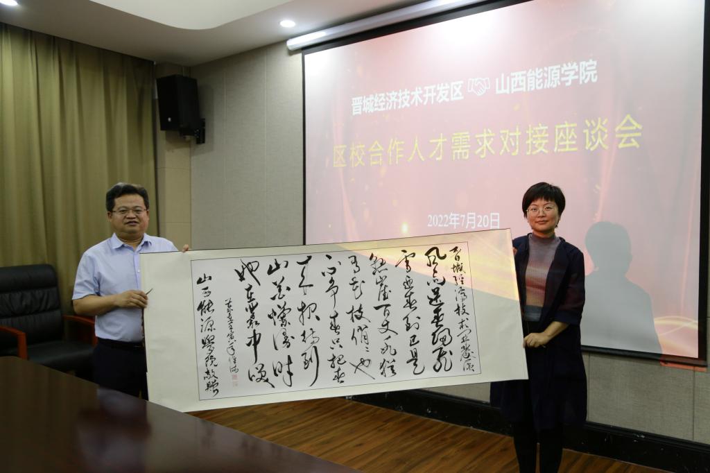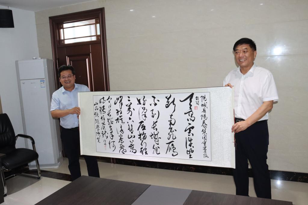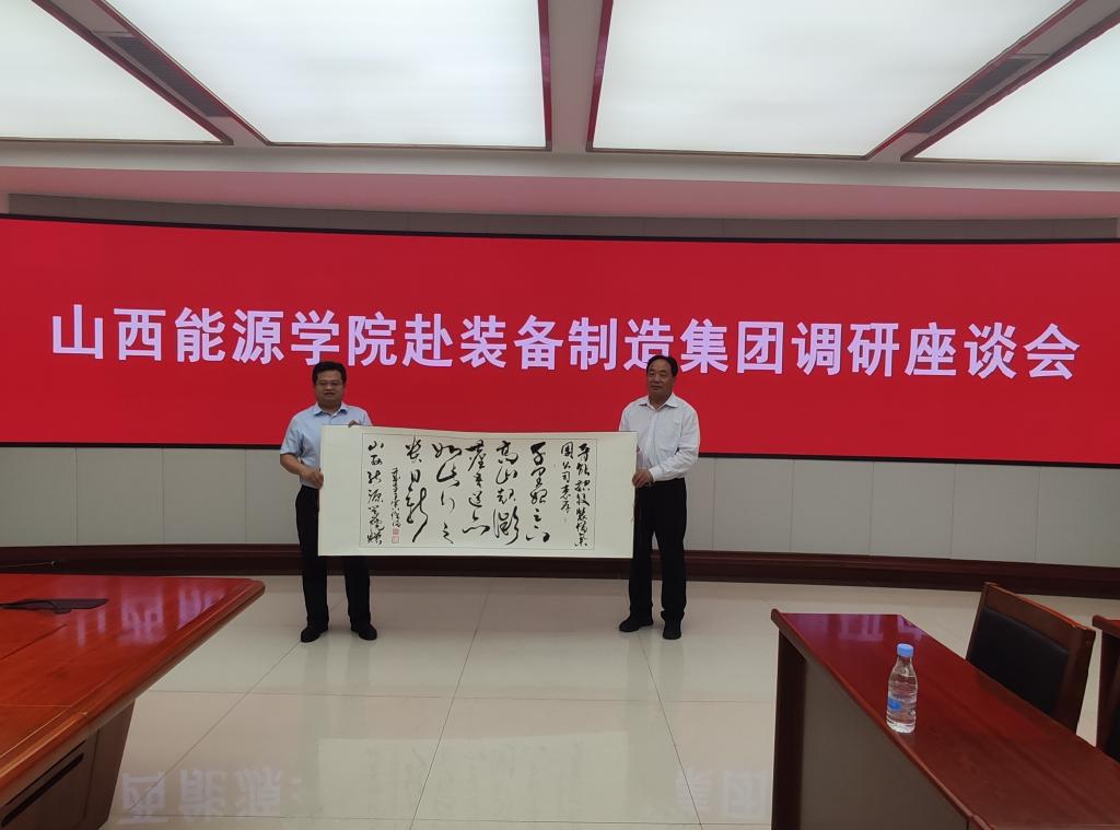 在调研结束后,冯国瑞副院长(主持行政工作)在与会人员的共同见证下,代表学校分别向晋能控股装备制造集团、晋城经济技术开发区、阳城县阳泰集团赠送了beat365教师创作的书法作品。