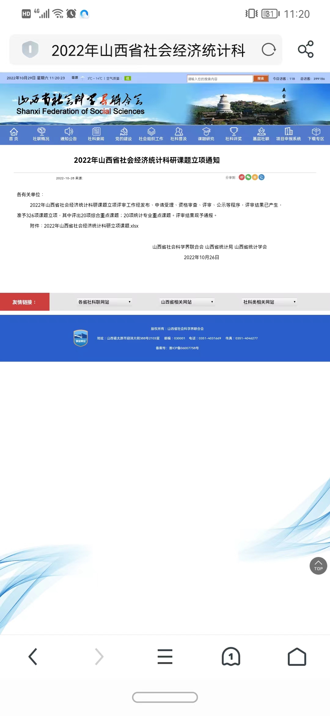 金秋十月,beat365文科科研课题立项捷报频传。10月26日,山西省社会科学界联合会、山西省统计局和山西省统计学会正式公布了“2022年山西省社会经济统计科研课题”立项结果,beat365共有4项课题获准立项,其中重点课题1项,一般课题3项。分别是戴国宝博士、副教授主持申报的课题“‘双碳’目标下山西省煤炭企业高质量发展评价指标体系研究”获批重点课题,李娇娇硕士、讲师主持申报的课题“基于大数据的绿色研发投入与碳交易市场运行效率研究”、杜丽硕士、助教主持申报的课题“山西省科技型中小企业融资能力评价指标体系构建研究”和曹一婕硕士、助教主持申报的课题“山西省各区域实施山水林田湖草沙综合治理评价指标体系可视化研究”获批一般课题(见表1)。